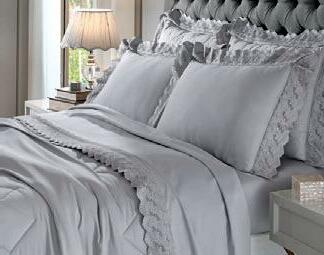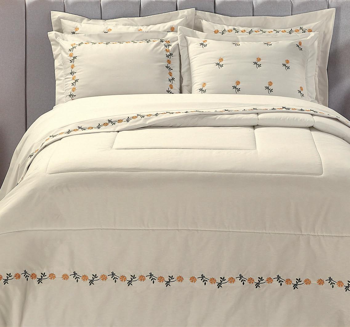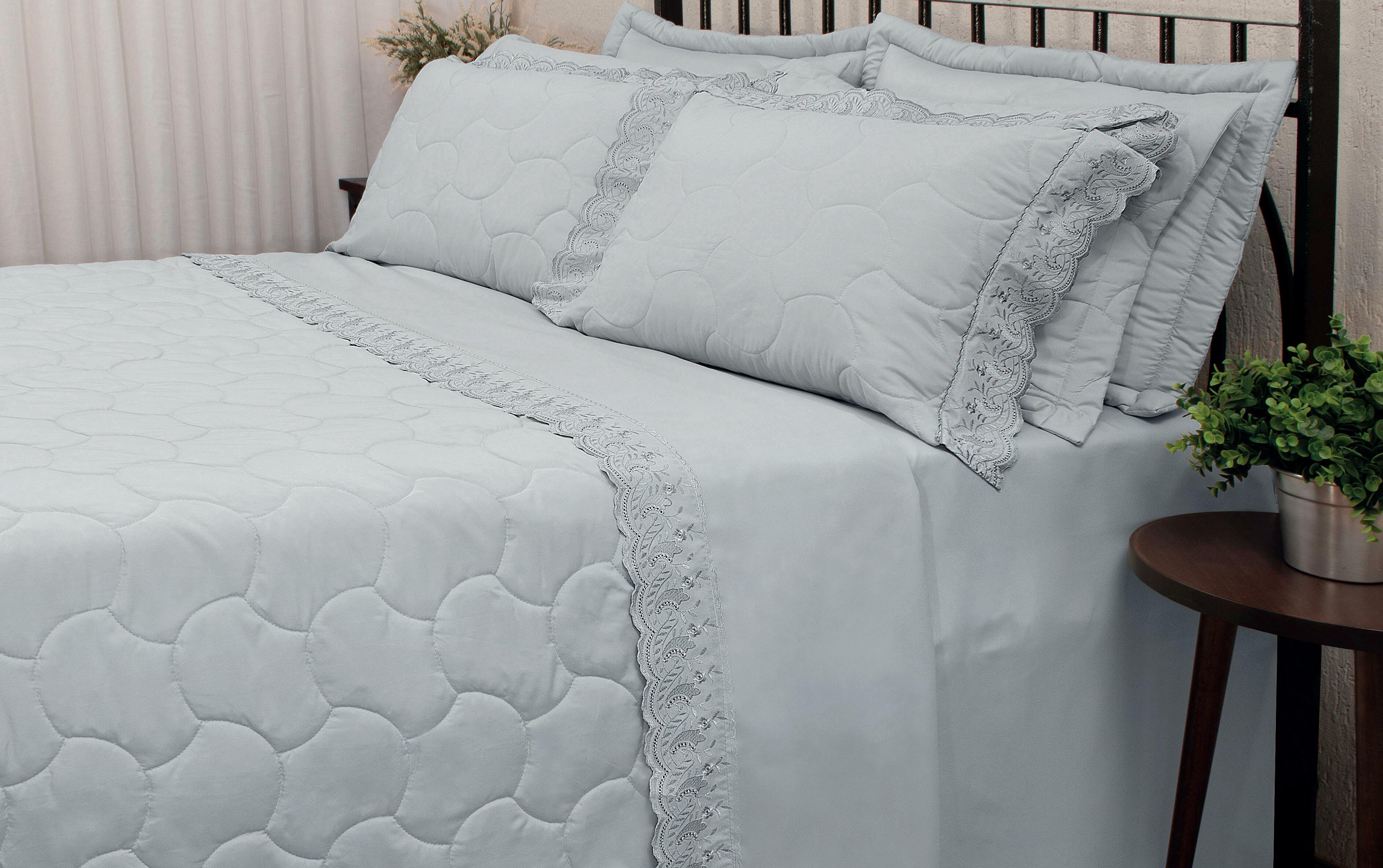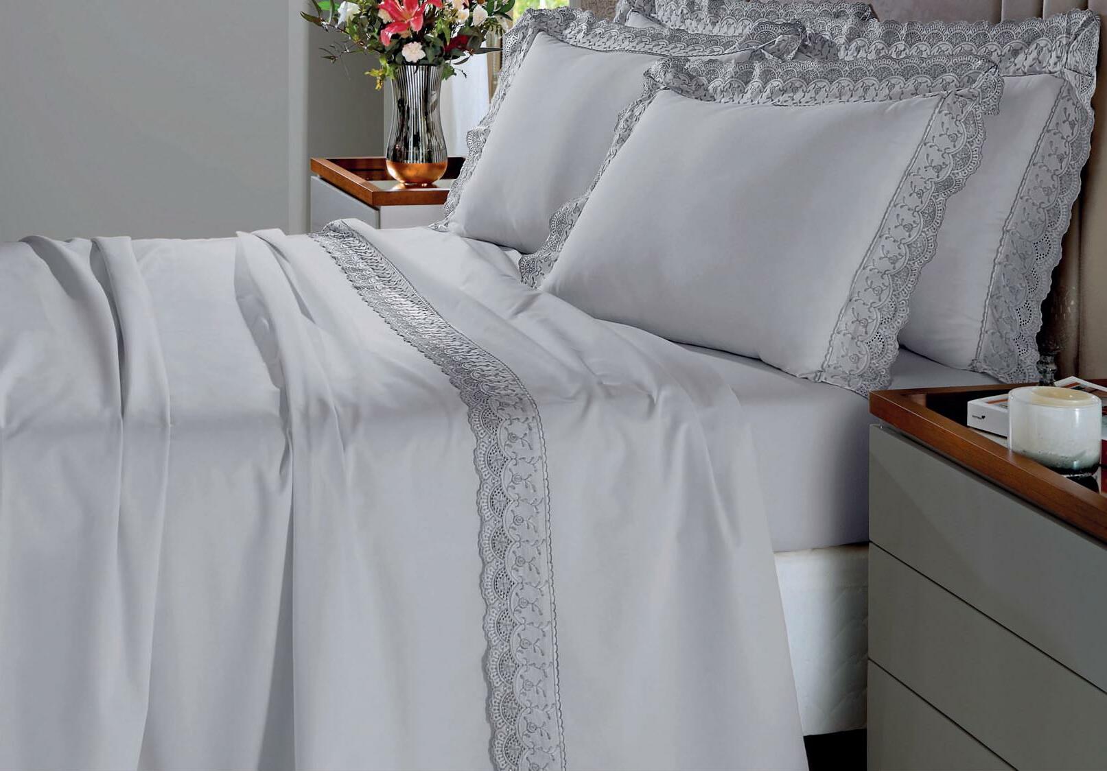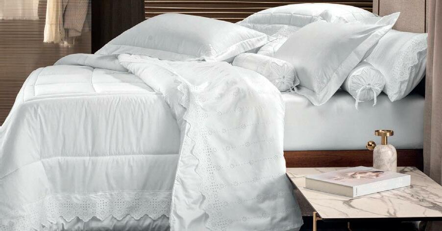 com barra em renda bordada Composição: Tecido 300 fios100% algodão EnchimentoFibra siliconizada100% poliéster