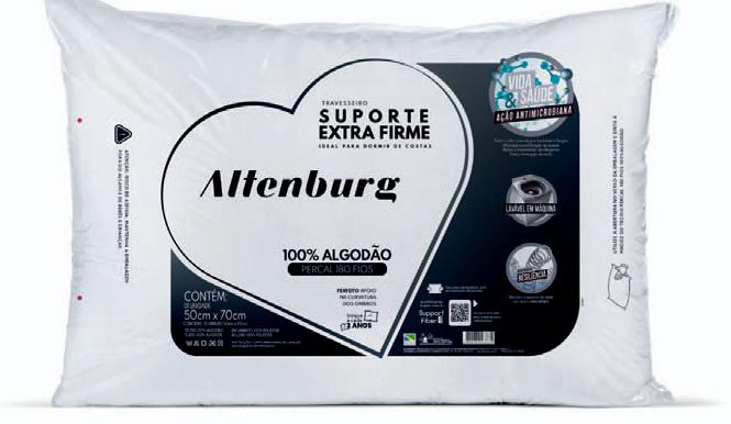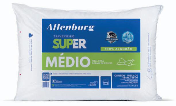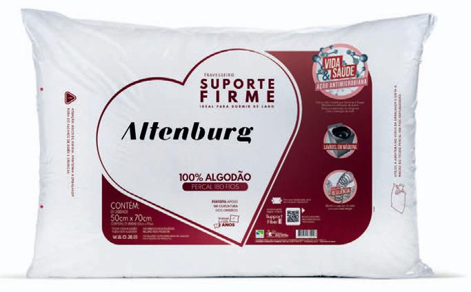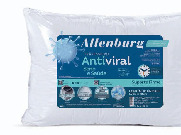Em tecido percal 180 fios com ação antiviral, antibacteriana. (mesmo princípio ativo do gel que evita que o vírus fique na superfície do travesseiro). Suporte firme. Ideal para quem dorme de lado.