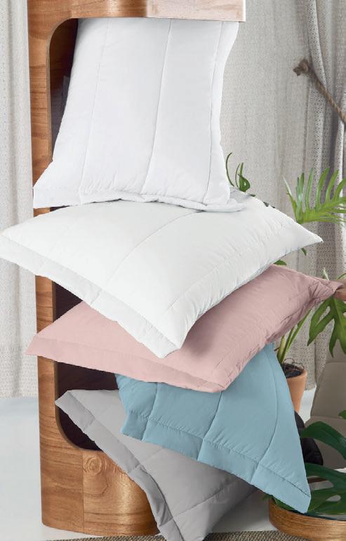 A fibra siliconizada promove incrível sensação de maciez e conforto, contribui para o alinhamento da coluna - 100% poliéster