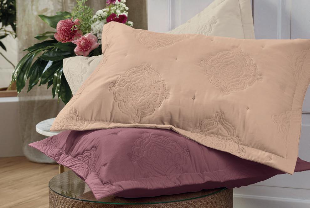 Par de fronhas 50 x 70 cm com abas em renda bordada