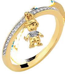 Ref. 020581-000 anel pendente menino folheado a ouro com pedras de zircônia e detalhes em ródio branco Tam. 14/16/18/20/22/24/26/28 Ref. 020579-000 anel pendente menina folheado a ouro com pedras de zircônia e detalhes em ródio branco Tam. 14/16/18/20/22/24/26/28