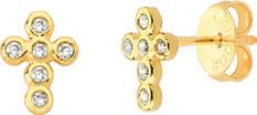 brinco cruz folheado a prata com pedras de zircônia