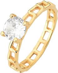 Ref. 016117-000 anel solitário duplo folheado a ouro com pedras de zircônia e detalhes em ródio branco Tam. 14/16/18/20/22/24