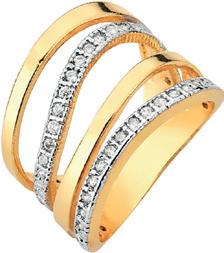 anel folheado a ouro com pedras de zircônia e detalhe em ródio branco Tam. 14/16/18/20/22/24
