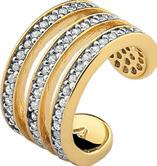 Ref. 043898-009 anel triplo folheado a ouro com pedras de zircônia e detalhe em ródio branco Tam. 14/16/18/20/22/24