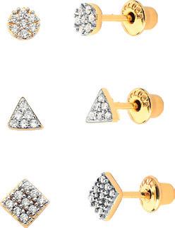 Ref. 037944-000FP conjunto com três pares de brincos pontos de luz folheados a prata com pedras de zircônia e pedras de strass