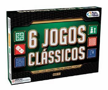 Kit 6 jogos clássicos de tabuleiro 1 tabuleiro,16 peões, 1 dado