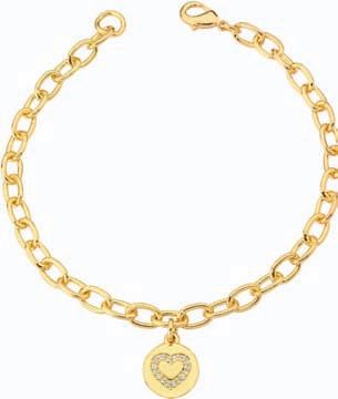 Ref. 041192-000P pulseira coração folheada a ouro com pedras de zircônia