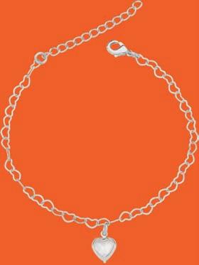 Ref. 046976-000FP pulseira coração folheada a prata com pedra de cristal Tam. 17 cm com alongador de 4 cm