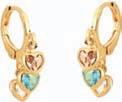 brinco folheado a ouro com pedra de cristal azul e pedras de strass