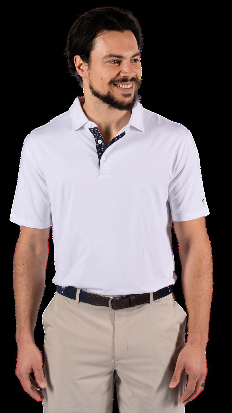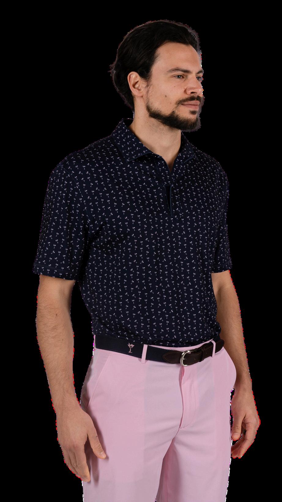 88% Poly, 12% Spandex White, Navy Martinis Placket