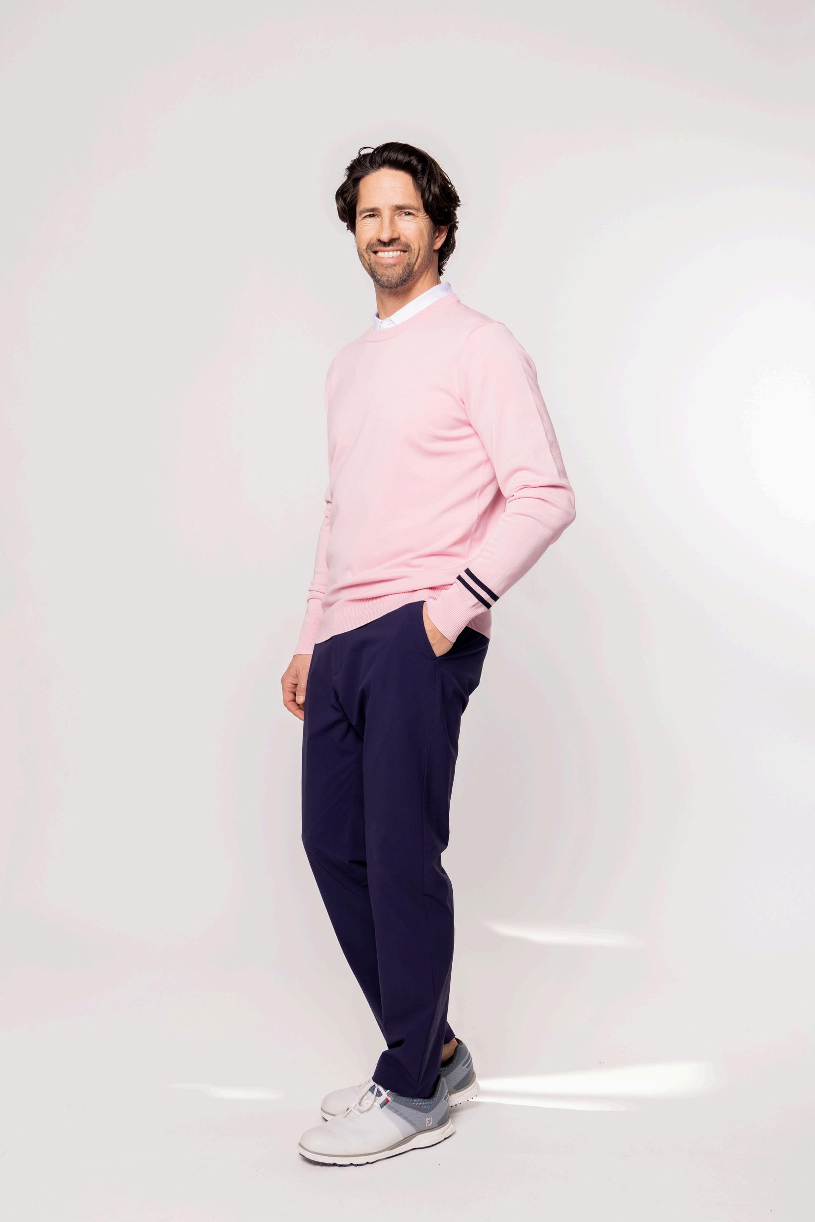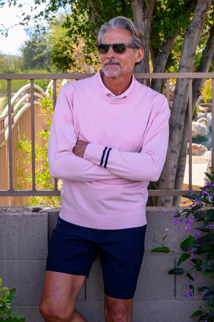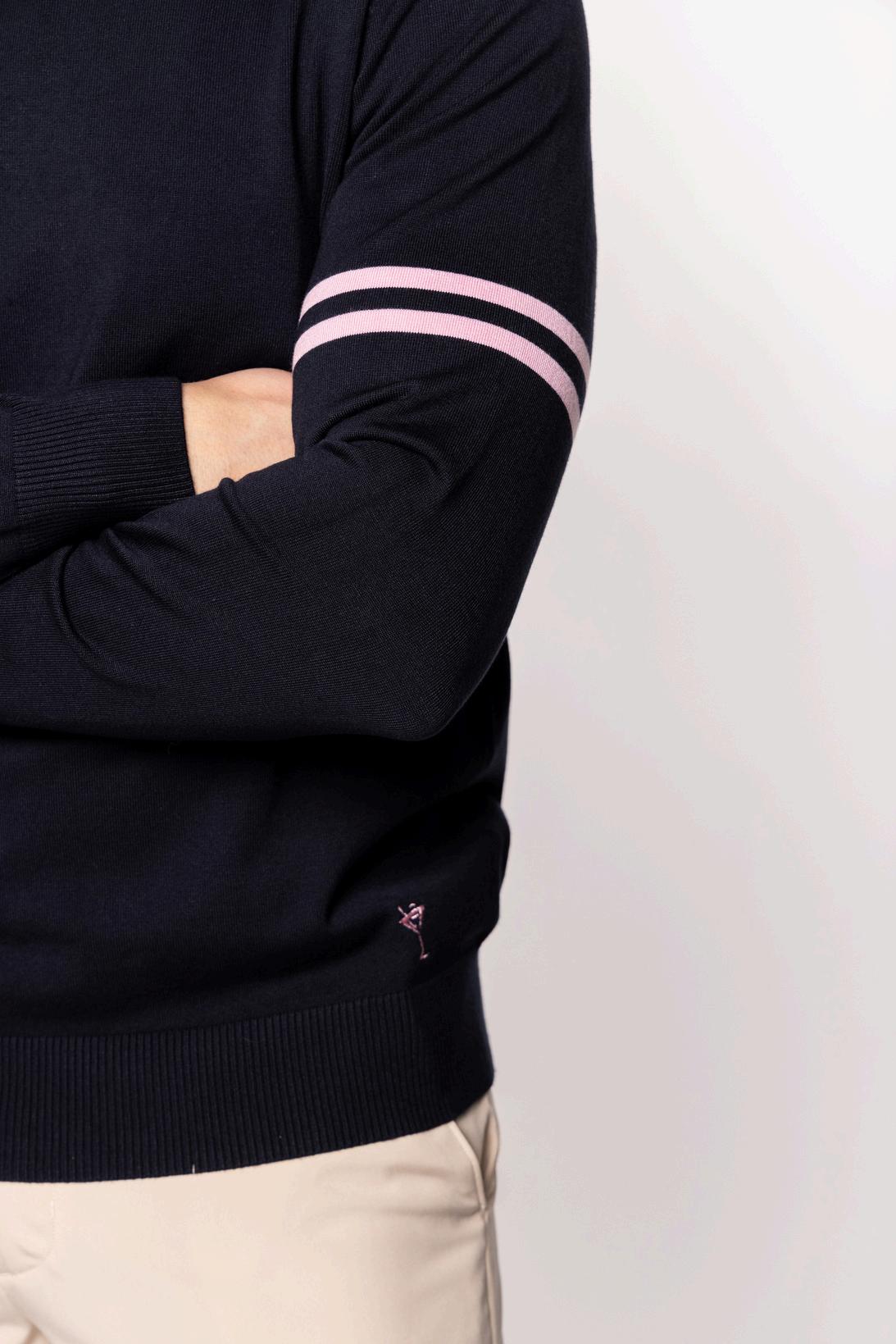 80% rayon, 20% nylon double light pink stripe on left sleeve s-xxl