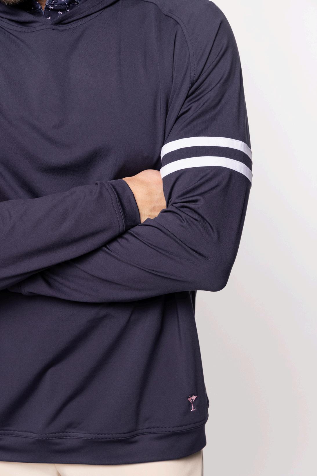 80% rayon, 20% nylon double navy strip on left sleeve cuff s-xxl