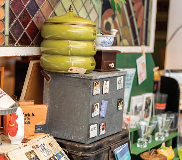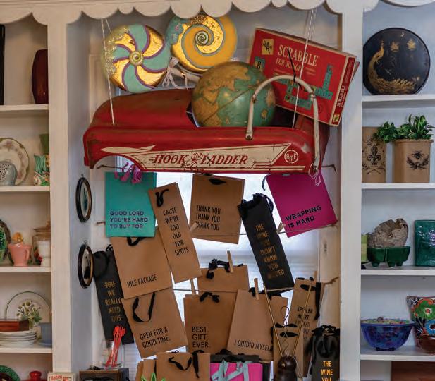 The eclectic browsing experience blends a carefully curated collection of antiques with thoughtfully selected gift ideas in spaces that mimic areas of a house — including a living room, a kitchen space, a garden room — and more.