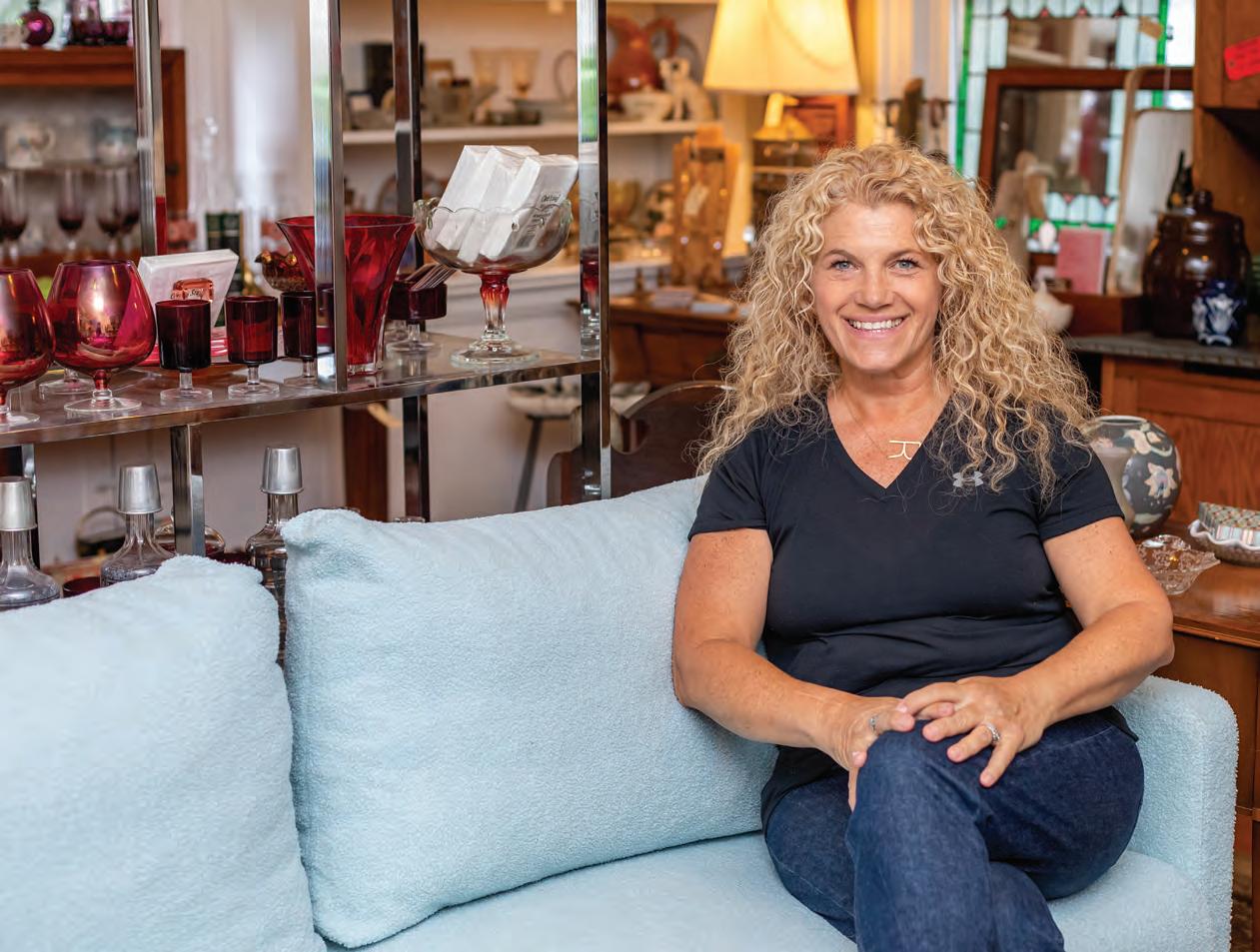 They also appreciate that almost everything in the store is for sale — down to the comfy couches arranged in a conversation pit to the old-fashioned stand-alone kitchen counter and cabinet spaces that display her kitchen items to the side tables and chairs that display lamps, jewelry, quilts and such.