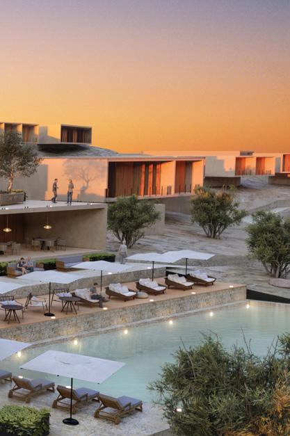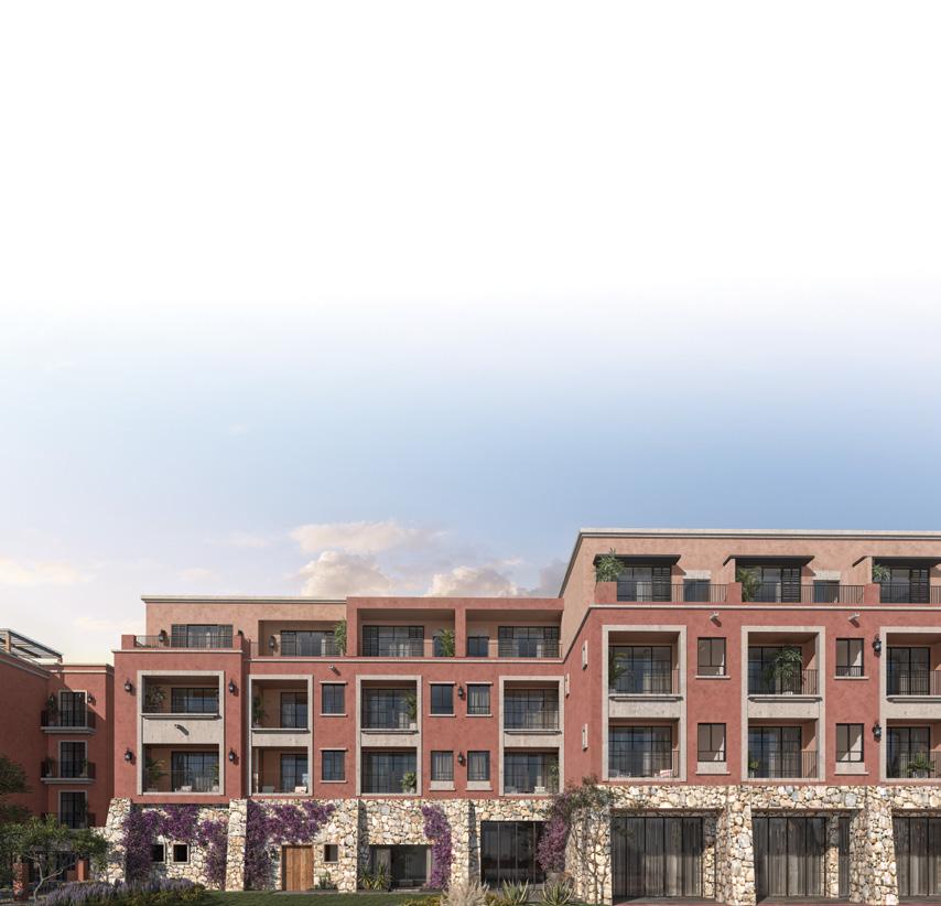 Entre las más significativas se encuentra la greca escalonada, presente en obras arquitectónicas emblemáticas, como las pirámides de Mitla en Oaxaca. Fuente principal de inspiración para este desarrollo de la península de Baja California que abarca un hotel de lujo, un spa, restaurantes signature, áreas comunes, bares, condominios y residencias.