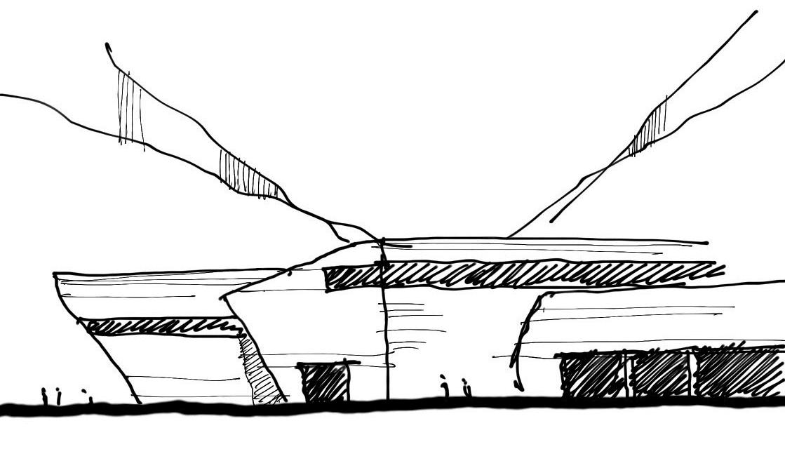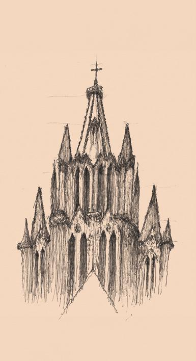 Santuario de los Mártires form analysis sketch by the architect José Manuel Vázquez Aldana. Boceto análisis de forma Santuario de los Mártires por el Arq. José Manuel Gómez Vázquez Aldana.