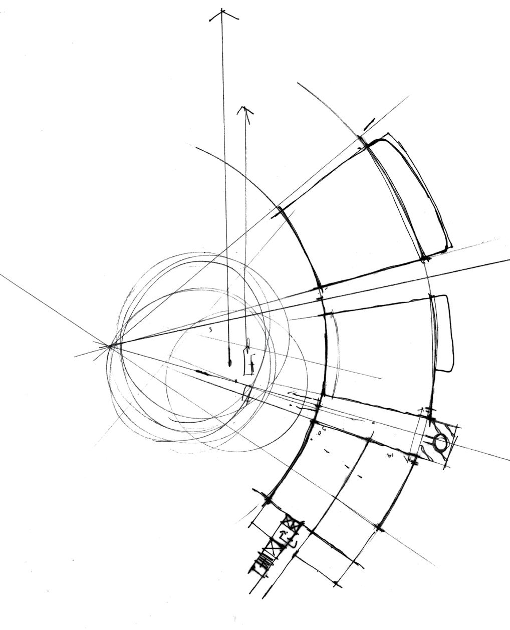 Estudio del movimiento y dirección de la acústica e isóptica. Bocetaje de los posibles canales y rebotes del sonido, así como optimizaciones acústicas.