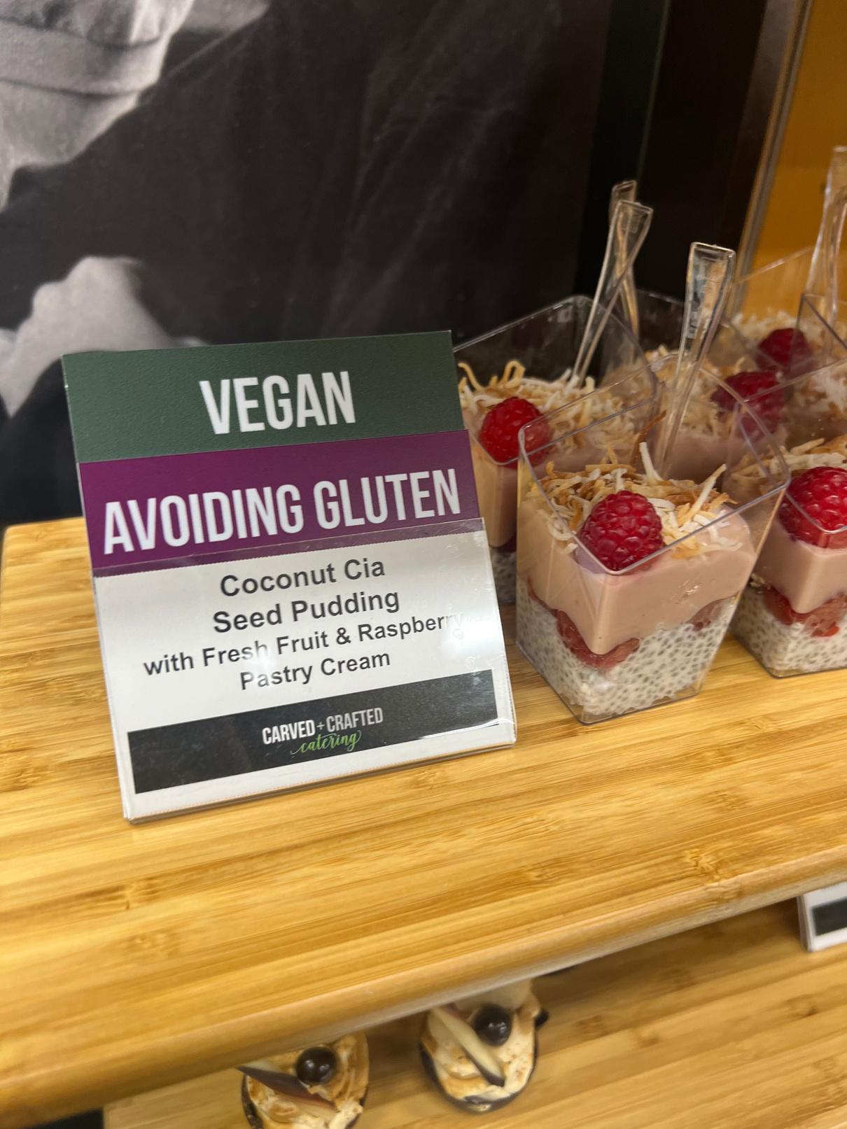 Our Delicious Without station removes 9 major allergens including milk, eggs, shellfish, gluten from all its dishes. All menu options are prepared at the station by our allergen training culinary team and served by an associate to help lessen the risk of cross contact. Please look for Vegan callouts