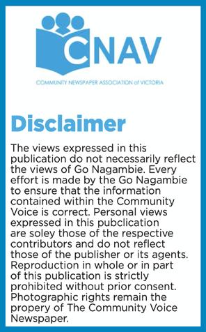 9 | THE COMMUNITY VOICE | 06 SEPTEMBER 2023 | ISSUE 532 We lcometothe N agambie CommunityLakesHouse 2023 AGM 20 September 363 HigH Street 1.30pm Speaker: NORIUEL KINROSS, paramedic community Support coordinator F o r m o re in formation, p leasedon’thesitate t o con tact coordinatorAnnaClose, c o o r din a tornlch@gmail.com, 57941487 Followed by a light Afternoon Tea