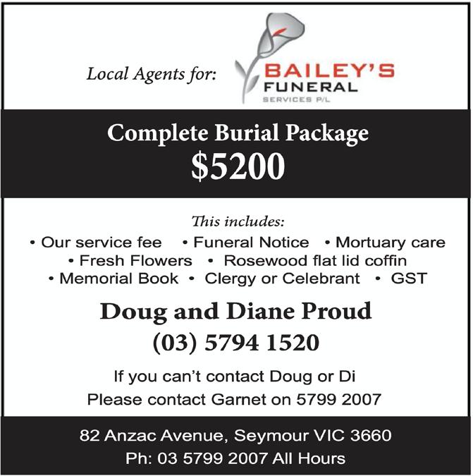 13 | THE COMMUNITY VOICE | 06 SEPTEMBER 2023 | ISSUE 532 • Building Design & Documentation • Town Planning Applications • Structural Design • Residential & Commercial • 3D Modelling Call Shane - 0438 415 545 E: shane@cba.net.au Vision Thru Design Call Jim for your lawn maintenance 131546 Contact Harrison hrjelec@gmail.com 0433832735 REC:32505 Services include: Undergrounds Generator changeover switches Lighting Power Floodlight install maintenance • Industrial & Domestic Painting • Interior Exterior • Roof Painting • Interior Consultant • Mitchell Shire Area • Industrial & Domestic Painting • Interior Exterior • Roof Painting • Interior Consultant • Mitchell Shire Area Painting Services DELIVERING TO NAGAMBIE, AVENEL, MURCHISON, RUSHWORTH, LONGWOOD & SURROUNDING AREAS 33-35 Industrial Cres Nagambie Suppliers of concrete for all your needs - building and construction, farming and the home handyman FOR A QUOTE - RING RON Phone: 5794 2969 Mobile: 0434 336 167 Prompt delivery and pick-up Services to Nagambie, Avenel and Seymour area Phone GARY for a free quote on 0429 951 330 Book early to avoid disappointment Time to clean out your backyard and sheds? 2 metre & 4 metre skips available PAINTER John Paxton Painting + Maintenance • Local painter • Fully insured • 30 years experience 0490 894 318 ABN - 27900625975 TOTAL PACKAGE TOTAL PACKAGE Earthworks, Landscape & Quarry products Earthworks, Landscape & Quarry products 5 Selectors Road, Seymour (Cnr Hume & GV Highways) Email: gvrquarry@bigpond.com Pick up or delivery available. Come and see our range Gianarelli & Sons family owned and operated for over 50 years GVR Quarry & Earthworks Call us today 5792 4332 We can supply all of your quarry products Specialising in: washed natural river pebbles, concrete, plaster and propaga�ng sands, Seymour toppings, crushed rock and topsoil. Grader, roller, excavators, loaders and �ppers for your earthwork needs.