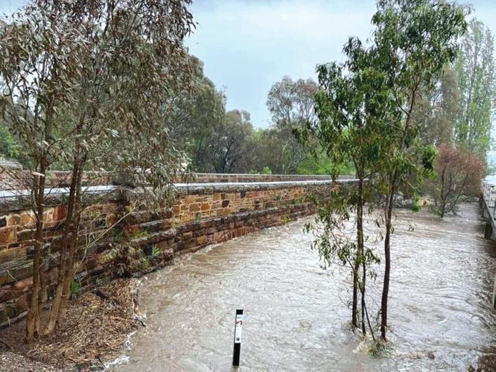 Jenny Wheeler was lucky to be alive when a large gum tree fell on her car in Livingstone Street Avenel. The water level in Hughes Creek reached the top of the arches on the historic crossing and roared through Stewart Park making its way to meet the Goulburn River. A second tree toppled over the new bridge causing damage to the railing. Fortunately the tree didn’t fall onto the stone bridge.
