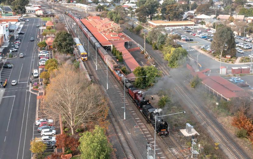 Fully restored by Steamrail, the Vintage Train holds a special place in Victoria’s rail heritage. The coal or oil-fired steam locomotives, dating from 1889 to 1952, together with carriages as early as 1906, showcase splendid timber work, pressedtin ceilings, walk-through corridors, opening windows, and comfortable compartment-style seating. Onboard, passengers were able to enjoy a wide range of refreshments from the onboard kiosk.