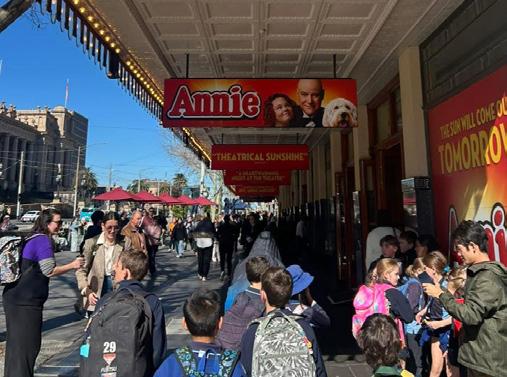 On Wednesday the 20th of August the Grade 3, 4, 5 and 6 students went to Annie the Musical, at the Princess Theatre in Melbourne. We left in the morning on the 9:51 train. To pass time, we took our notebooks and wrote notes to each other. When we arrived, we walked to the tram on Spencer Street and travelled in the free tram zone all the way to Spring Street. When we got off, it was time for lunch, so we ate at Parliament Gardens. We walked over to the Princess Theatre, and we were lucky enough to get to pat Sandy the dog before the show! The Princess Theatre is the oldest in Melbourne, it was a very fancy and we sat quite high. Once the show started, we were transfixed. Some learners have reflected saying: