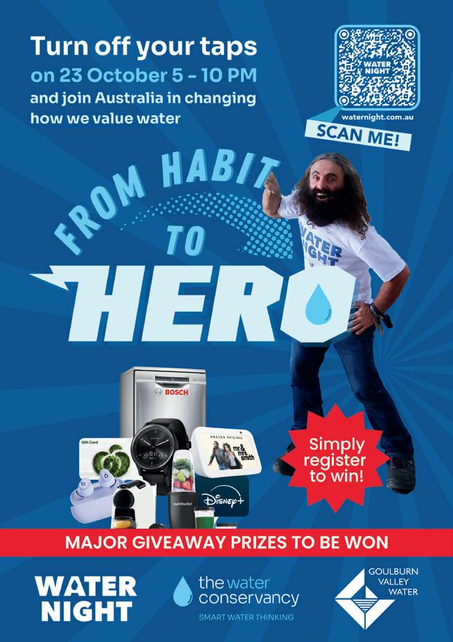 On Thursday, October 23, from 5:00 p.m. to 10:00 p.m., Water Night, a national initiative by the Water Conservancy, invites participants to turn off nonessential taps and reflect on their unconscious water use. After last year’s success with 200 participating homes, Goulburn Valley Water is calling on more households, schools, sporting clubs, and community