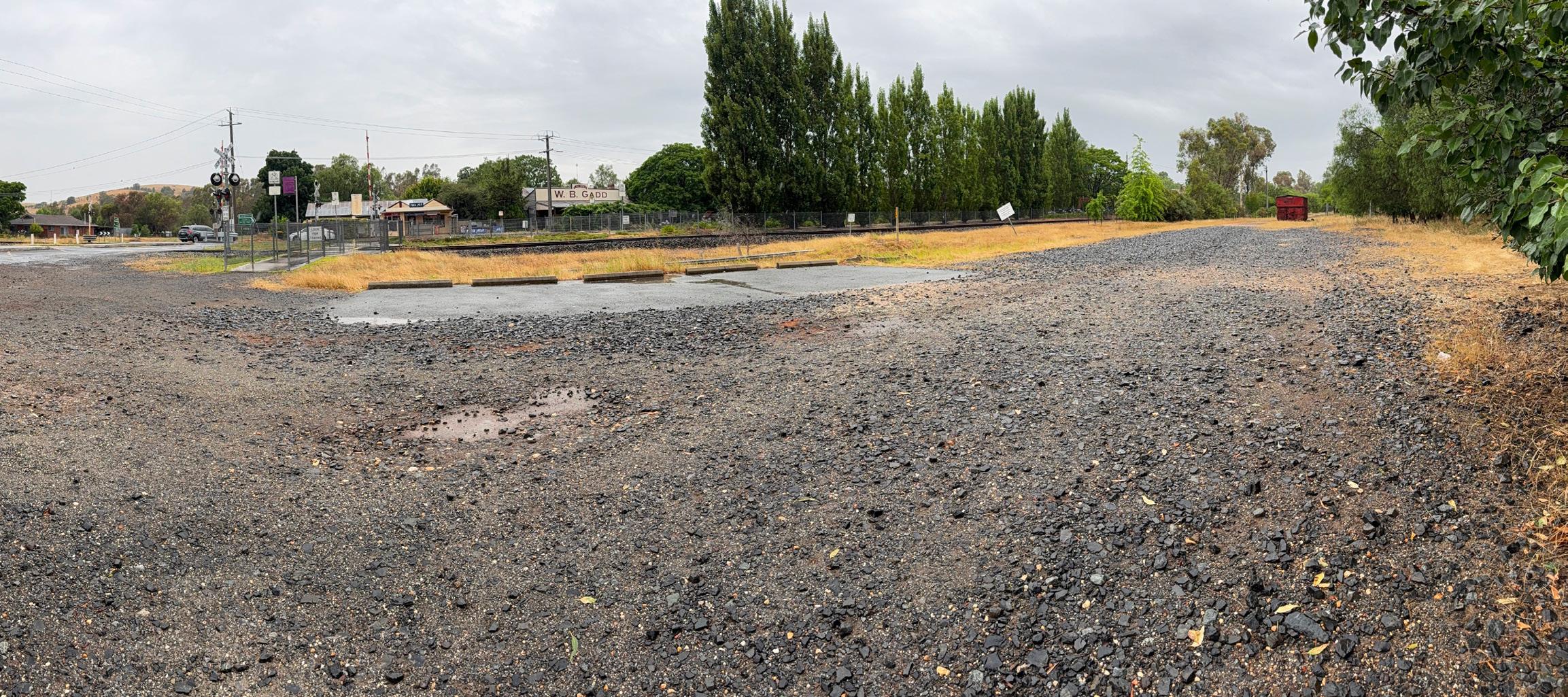 The nearby VicTrack-managed rail yard adjacent to the station serves as an informal parking area, but it is unsealed, uneven, and poorly maintained. The area is predominantly track ballast and suffers from little maintenance, with potholes hampering usability.