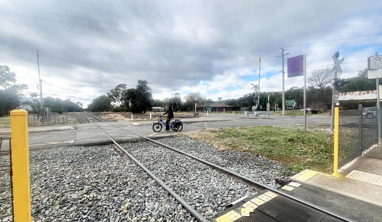 In April, a primary school student was seriously injured when the wheel of their bicycle was caught by a freight train while waiting at the Bank Street rail crossing.