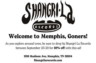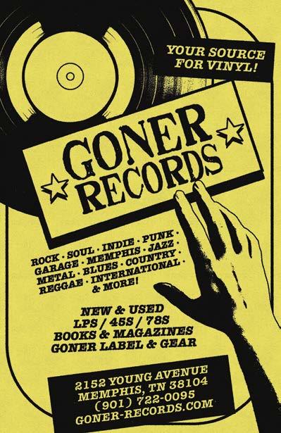 We’re so happy you are here! We hope this guide will come in handy during the festival. Try to schedule some time to mix in some side trips to try some restaurants, check out some Memphis landmarks, and hang out with friends both old and new. You can do it! We’ve got some tips in this magazine, and words of advice from people who know. The advertisers in here believe in this festival — please support them. Thank you so much for coming to Gonerfest, whether you’re coming from Japan, Finland, Arkansas, California, New York or from across town in Memphis, we love the community you have all helped create.