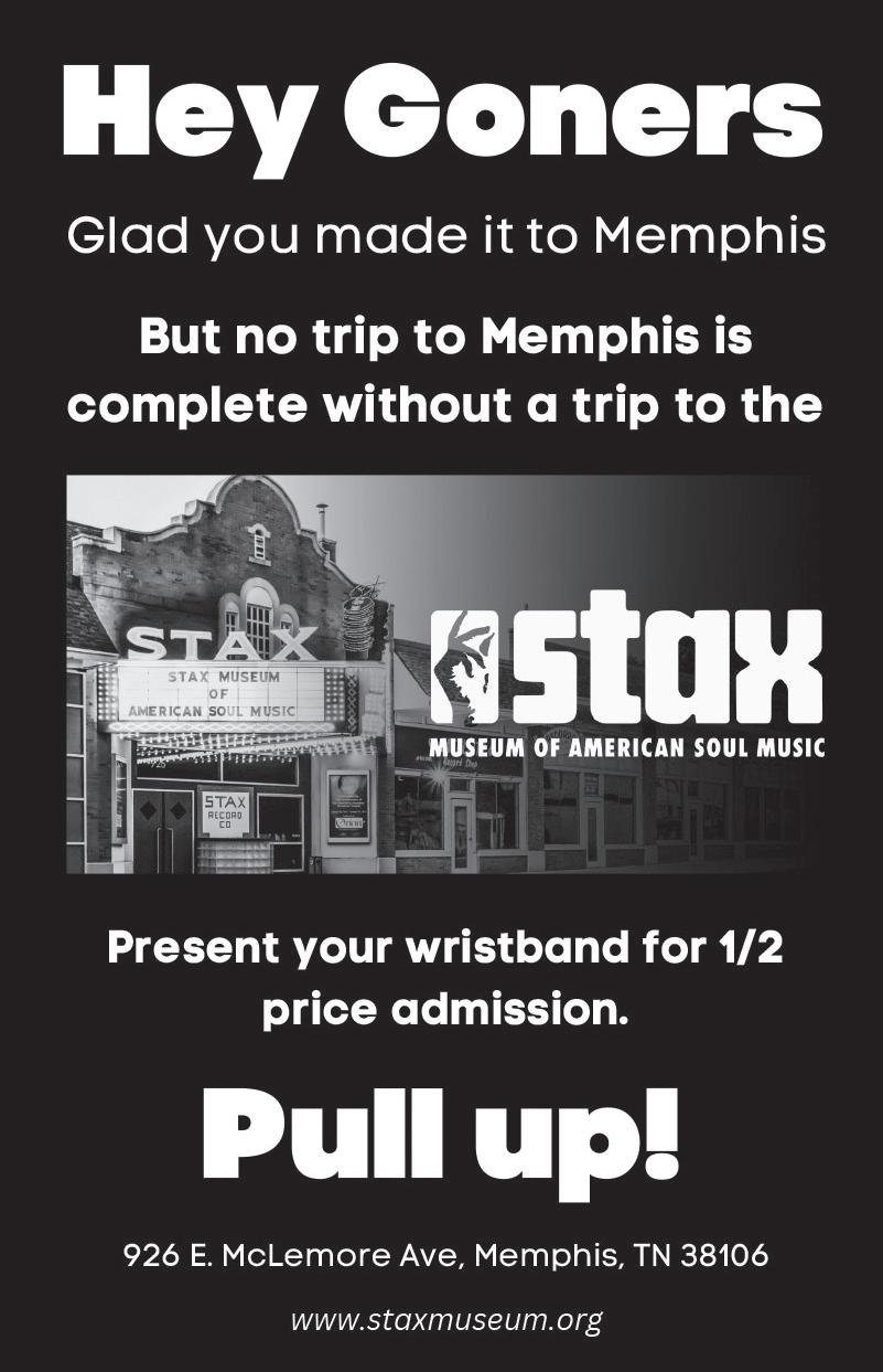 A big part of Gonerfests 1 through 16 was having visitors experience different venues around Memphis. The Hi Tone, Murphys, The Buccaneer, DKDC, and Memphis Made all hosted epic Gonerfests. Now that we’ve consolidated everything into one venue for the fest, these afterparties can get you into different spaces and meeting different people. We appreciate the effort that being a live venue demands... go check out some more Memphis spots and see more music!