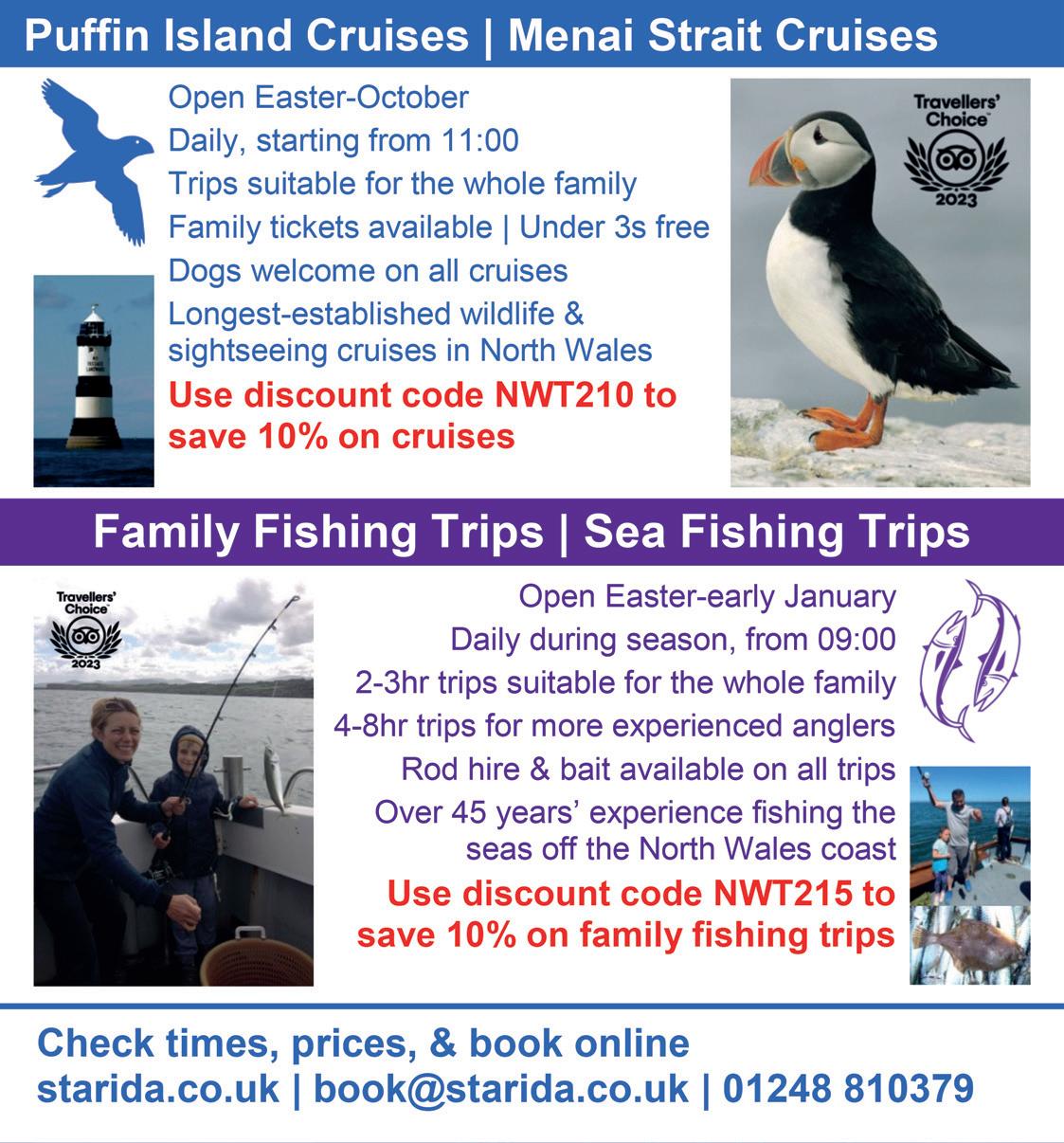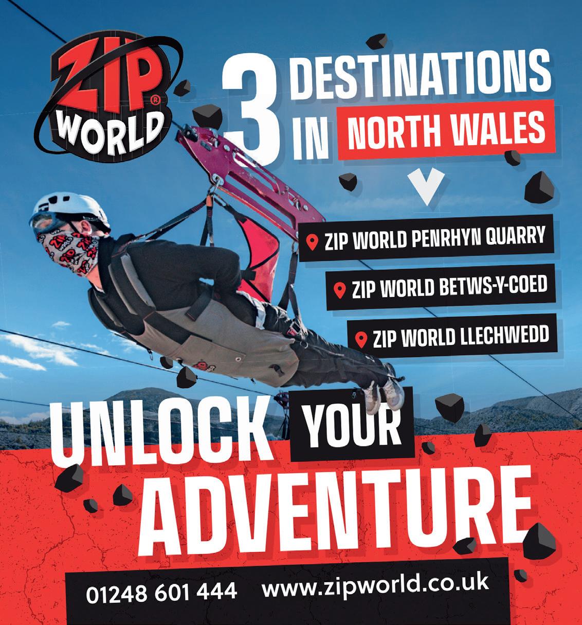 Llangollen Visit Wales Quality Assured Great Days Out North Wales YOUR ADVENTURE BOOK NOW our place Fami y and friends adventure days await Learn to hike, cl mb indoors/outdoors, mounta n b ke, canoe and kayak w th our world class instructors Free k t hire, great faci ities w th dinner, B&B accommodation, a l censed bar and café with the best view n Eryri Call us 01690 720214 www pyb co uk/groups/ ...you don’t know what you are missing We have it all here in North Wales... in abundance Come to North Wales, enjoy our outdoor and indoor attractions, something to do in all weather and for all ages. Visit elegant historic houses and gardens, visit industrial sites or simply relaxing and enjoying the flora and fauna in the areas of outstanding natural beauty. If you crave a little excitement, we have that too. Why not seek out some North Wales adventure and activities – after all we’ve become the adventure and outdoor capital of the UK. North Wales is not just a place to visit, it’s a place to explore, discover and revisit time and time again. You will be spoilt for choice so why not enjoy precious family time in the most awe-inspiring landscape you’re ever likely to find. This easy to use pocket guide includes a free map and special offer section to help you plan and save whilst you take in the attractions and activities of North Wales. For more inspiration call 01492 531731 How to find us You might be surprised, but we’re really easy to get to from anywhere in Britain. Just over an hour from Manchester, and four from London. Road Birmingham Distance: 131 miles Time: 2 hour and 12 min Leeds Distance: 119 miles Time: 2 hour Liverpool Distance: 50 miles Time: 1 hour Chester Distance: 38 miles Time: 45 min London Distance: 254 miles Time: 4 hours Manchester Distance: 77 miles Time: 1 hour and 30 min Nottingham Distance: 145 miles Time: 2 hours and 28 min Stoke-on-Trent Distance: 90 miles Time: 1 hour and 30 min Rail Rail services from London Euston and local train enquiries. Tel: 03457 48 49 50 North Wales by Rail Crewe to Holyhead - 123 min Manchester to Llandudno Junction - 120 min London to Flint - 163 min Sea Irish Ferries: 0818 300400 Stena Line: 08447 707070 03 01 02 04 11 11 12 14 15 16 17 18 19 20 21 23 22 24 25 26 27 29 28 30 31 13 05 06 06 06 07 08 09 10 RibRide. The original and best. Est 2005 We operate our large fleet of boats all year from Menai Bridge to a variety of destinations along our coast. All ages and budgets. ribride.co.uk 0333 1234 303 The UK's favourite Adventure Boat Tour Nature beckons Discover the drama of a seabird city, where Puffins raise chicks and Choughs and Ravens play. Enjoy breathtaking views, inspiring trails and a mouth-watering café. Plan your visit today South Stack The RSPB is a registered charity in England & Wales 207076, in Scotland SC037654. Image by Mike Read (rspb images.com) rspb.org.uk/southstack Anglesey Sea Zoo Discover Anglesey Sea Zoo Bring the family along to visit Seahorses, Octopus, Lobsters and other exciting elusive British marine animals up close. Lose yourself in our moon jellyfish display or venture into the shipwreck. The aquarium also has its very own gift shop and a Rockpool Cafe which serves a selection of drinks, snacks and meals. If that isn’t enough, there’s a children’s play area, crazy golf and we’re right on Anglesey Coastal Path to guarantee a splashing day out. Open daily all year round. Check website for opening times Brynsiencyn Llanfairpwll Anglesey LL61 6TQ Visit www.angleseyseazoo.co.uk Tel 01248 430411 Brynsiencyn 04 01 02 £ £ £ 03 Xscape Rooms Bangor Bangor’s award winning escape room! Have you ever wondered what it’s like taking part in a prison escape? Do you have what it takes to solve a strange mystery at the post office? Are you ready to immerse yourself into our specially themed rooms? At Xscape we pride ourselves in creating laughter and memories for families and friends, there’s a reason we have over 150+ five star reviews and multi awards.. Perfect team building activity…whatever the weather. Do you have what it takes to Xscape?! Save 15% off your booking by using code: GONORTHWALES24 Offer T& C’s valid: 01/01/24-31/12/24 Second Floor Council Offices Ffordd Gwynedd Bangor LL57 1DT Visit www.xscapebangor.co.uk Bangor 05 06 07 Special Offer Vouchers £1 OFF ENTRY AT PARTICIPATING ATTRACTIONS OR OFFER STATED ON ADVERT Look for the logo for special offers Entrance discount applicable to minimum entrance fee of one full paying adult plus child. Voucher valid until 31/12/24. Detail of the offer including terms and conditions can be viewed at greatdaysoutnorthwales.com/special-offers/. Voucher is not transferable, for sale or resale or redeemed for cash. The voucher is not valid in conjunction with any other special offer North Wales Tourism accepts no responsibility, financial or otherwise for the misuse of vouchers. Valid to 31/12/24 £ Special Offer Vouchers £1 OFF ENTRY AT PARTICIPATING ATTRACTIONS OR OFFER STATED ON ADVERT Look for the logo for special offers Entrance discount applicable to minimum entrance fee of one full paying adult plus child. Voucher valid until 31/12/24. Detail of the offer including terms and conditions can be viewed at greatdaysoutnorthwales.com/special-offers/. Voucher is not transferable, for sale or resale or redeemed for cash. The voucher is not valid in conjunction with any other special offer North Wales Tourism accepts no responsibility, financial or otherwise for the misuse of vouchers. Valid to 31/12/24 £ Special Offer Vouchers £1 OFF ENTRY AT PARTICIPATING ATTRACTIONS OR OFFER STATED ON ADVERT Look for the logo for special offers Entrance discount applicable to minimum entrance fee of one full paying adult plus child. Voucher valid until 31/12/24. Detail of the offer including terms and conditions can be viewed at greatdaysoutnorthwales.com/special-offers/. Voucher is not transferable, for sale or resale or redeemed for cash. The vouch