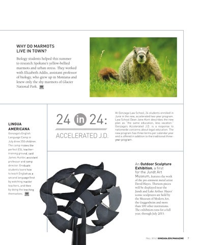 LINGUA AMERICANA Gonzaga’s English Language Camp in July drew 350 children. The camp makes the perfect ESL teachertraining ground, said James Hunter, assistant professor and camp director. Graduate students learn how to teach English as a second language first by watching master teachers, and then by doing the teaching themselves.