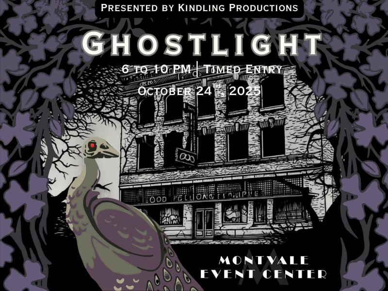 About: Step into Ghostlight, an immersive Halloween experience by Kindling Productions at the historic Montvale Event Center on Friday, Oct. 24, 6–10 p.m. Explore haunted halls filled with live music, dance, and eerie performances by over 25 regional artists, including Coil Aerial, Quiero Flamenco, and Stage Left Theatre. A PG-13 event with beverages available for purchase