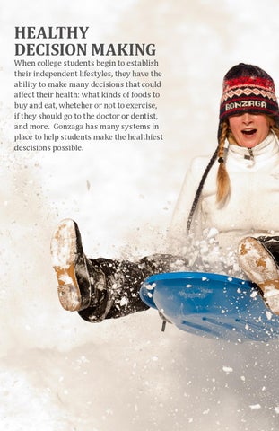 When college students begin to establish their independent lifestyles, they have the ability to make many decisions that could affect their health: what kinds of foods to buy and eat, wheteher or not to exercise, if they should go to the doctor or dentist, and more. Gonzaga has many systems in place to help students make the healthiest descisions possible.
