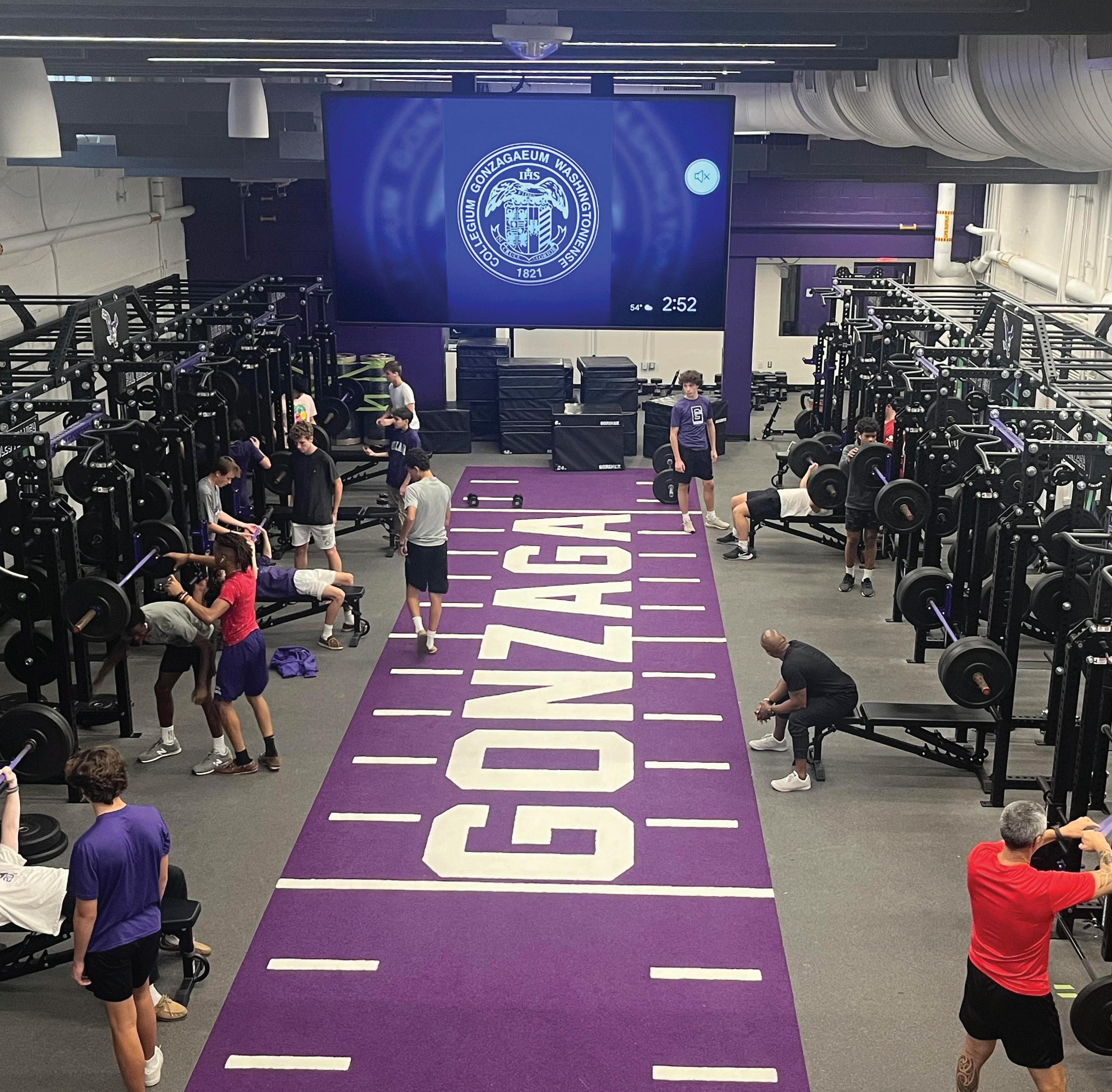 room. Previously, Gonzaga had six racks in the weight room, but with the new reno vations, there are 10+ weightlifting racks. Other new addi tions include a turf strip for sled pushes and power block adjustable dumbbells. This Performance Center allows Gonzaga Students Athletes to train, compete, and recover at the highest level.