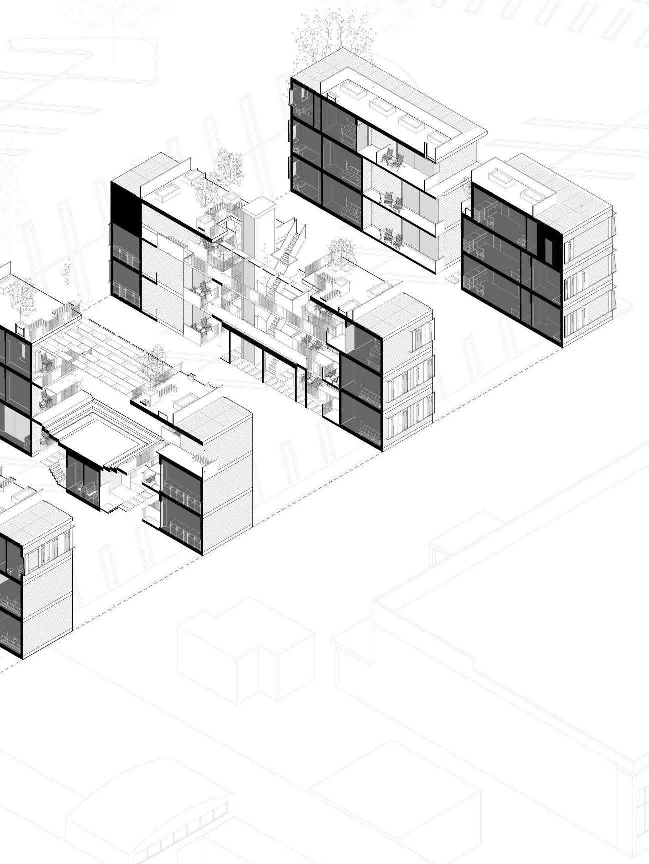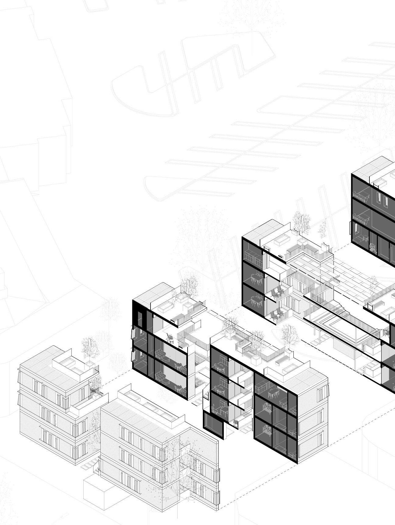 Inspired by jazz’s historical presence and cultural significance in Leimert Park, Jazz on the Lawn attracts musicians by providing them with a performance venue at the heart of a housing complex. Following the limited equity co-operative model, the complex provides affordable long-term rental units, reacts to tenants and owners of diverse cultural and demographic backgrounds, offers respective variety and openness, and incorporates functions that serve the community beyond housing. Building systems follow sustainable strategies to reduce energy consumption.