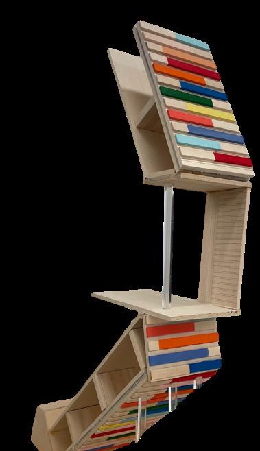 While taking a woodshop class, I needed a better way of organizing my papers used for mixed media and collage art. Thus, I created my own design of a file organizer with the knowledge of woodworking and joints. It contains slide in shelves, two drawers and several pen holders.