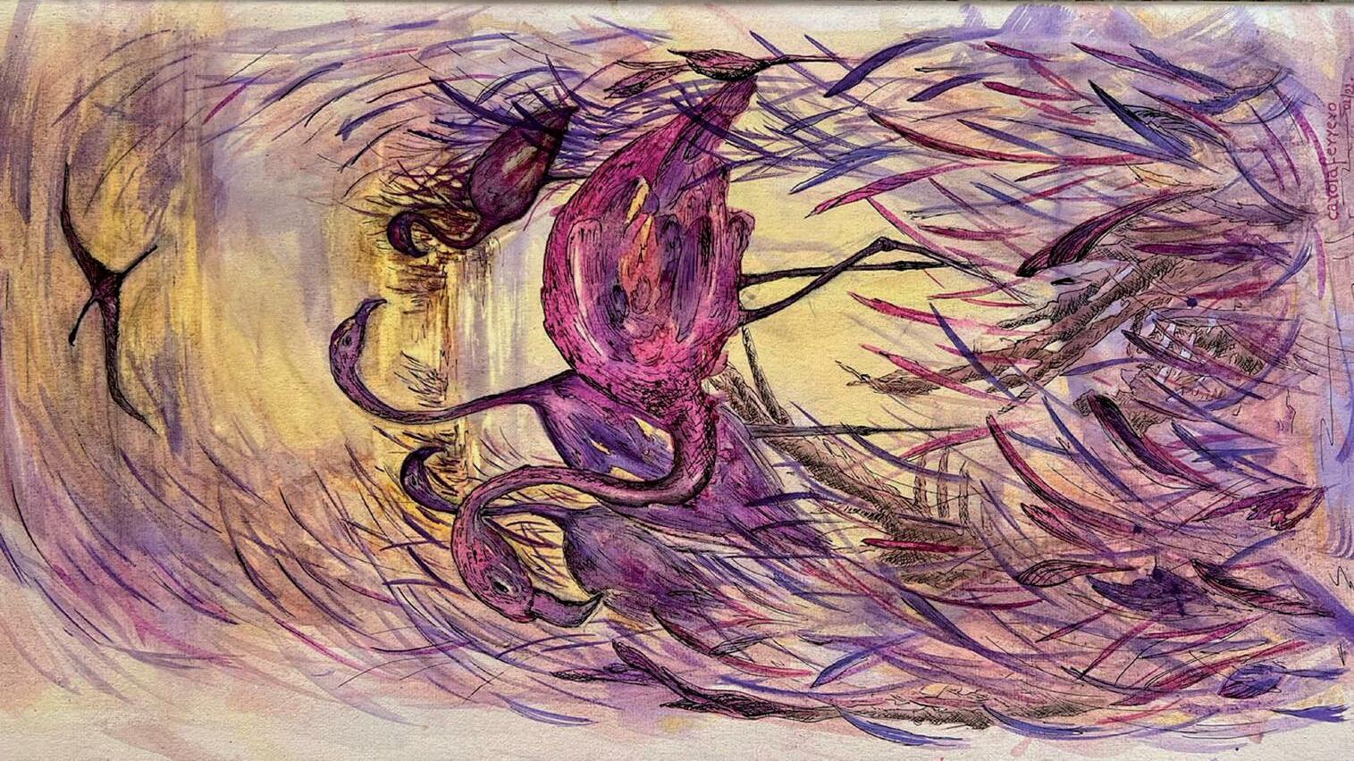 Carola B. Ferrero / Nació en Santa Rosa, La Pampa, en 1971, es artista plástica. Se formó en artes visuales a través de la asistencia a talleres y clínicas de importantes y reconocidos artistas y profesores provinciales y nacionales, entre los que se pueden destacar a: Stella Salas, Ricardo Arcuri, Raúl Ponce, Darío Mastrosimone, Ricardo Celma, entre otros. Realizó numerosas muestras individuales y colectivas en la provincia, también en Buenos Aires. Sus pinturas han sido distinguidas en Salones de arte, obteniendo premios y menciones, 1° Premio en el Salón de Otoño -PaisajeEdición 2016, 2° Premio Salón de Otoño -PaisajeEdición 2017 en Ciudad de Gral. Pico. Mención en el XXV Salón “Ciudad de General Pico”, Edición 2016, Mención en el XXVII Salón de Pintura “Ciudad de General Pico”, Edición 2018. Sus pinturas son adquiridas por coleccionistas de Argentina y E.E.U.U. Obra: “Teñida de rosa” (80 x40 cm) Técnica: Anilina y tinta