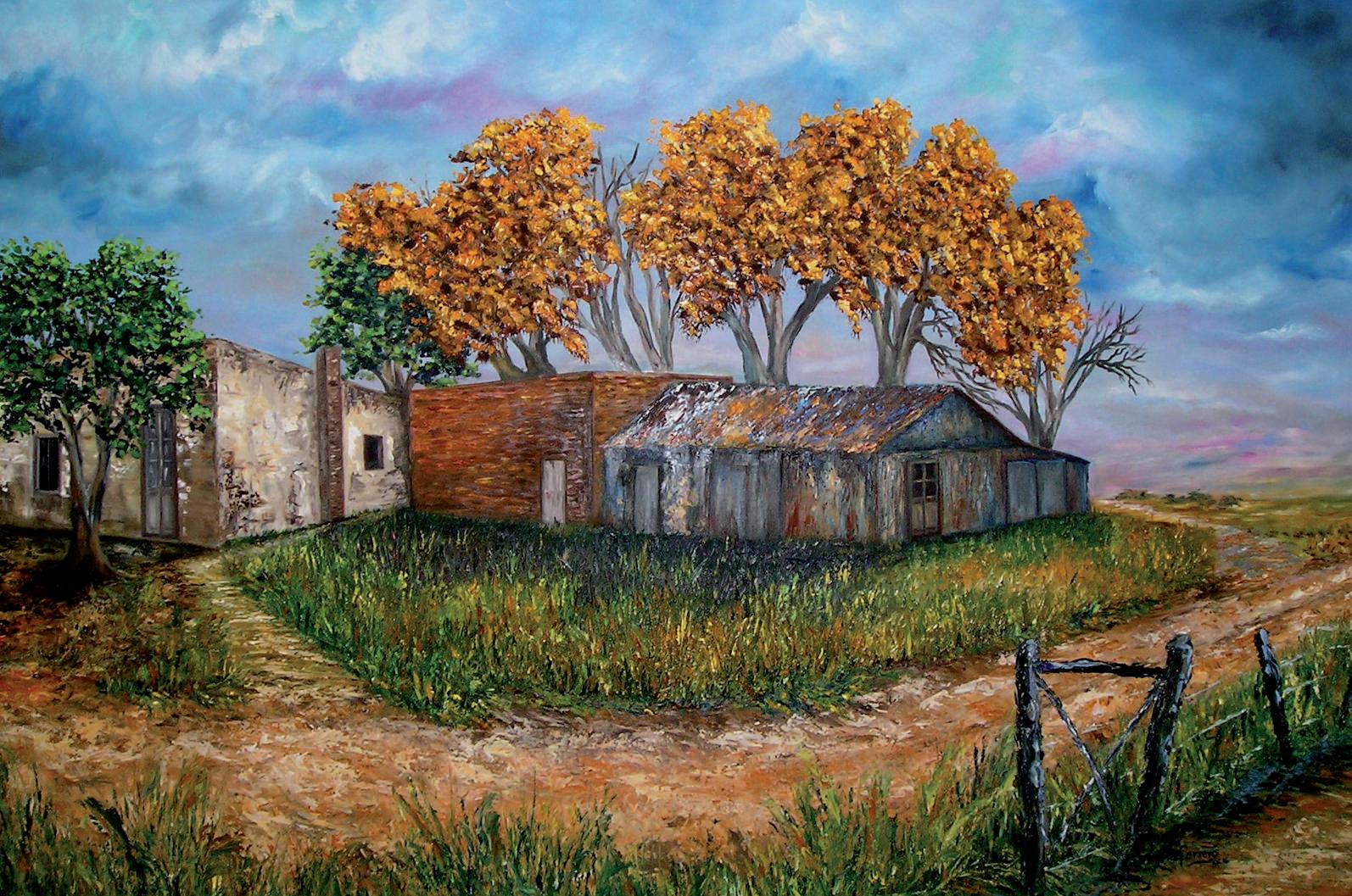 Carola B. Ferrero / Nació en Santa Rosa, La Pampa, en 1971, es artista plástica. Se formó en artes visuales a través de la asistencia a talleres y clínicas de importantes y reconocidos artistas y profesores provinciales y nacionales, entre los que se pueden destacar a: Stella Salas, Ricardo Arcuri, Raúl Ponce, Darío Mastrosimone, Ricardo Celma, entre otros. Realizó numerosas muestras individuales y colectivas en la provincia, también en Buenos Aires. Sus pinturas han sido distinguidas en Salones de arte, obteniendo premios y menciones, 1° Premio en el Salón de Otoño -Paisaje - Edición 2016, 2° Premio Salón de Otoño -Paisaje- Edición 2017 en Ciudad de Gral. Pico. Mención en el XXV Salón “Ciudad de General Pico”, Edición 2016, Mención en el XXVII Salón de Pintura “Ciudad de General Pico”, Edición 2018. Sus pinturas son adquiridas por coleccionistas de Argentina y E.E.U.U. Obra: “El taller de Saravia” (60x90 cm) Técnica: Óleo