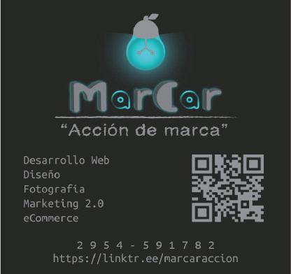 Brasería Rotisería C. Gil 699 y O' Higgins Delivery: 455444/317105 A PUNTO Brasería @apunto.braseria Lunes: Descanso semanal DIRECTO DE FÁBRICA Mueblería - Puertas - Ventanas Pampa 219 - Tel. 387170 - whatsapp: 15445382 elquebrachoaberturasymuebles@gmail.com L. a V. de 10 a 12:30 y 16:30 a 20 hs / Sábado de 10 a 13 hs. Muebles de Alamo - Diseño country y nórdico Hindu - Mesas - Sillas - Standard y a medida Amoblamientos de cocina - Bajo mesada - Alacenas Bahiut - Terminados o a terminar Inmobiliaria Riera ROBERTO ARAMÍS RIERA Col. 592 CMCCLP Gobernador Duval N° 587 Tel: 02954-243500 Cel: 2954 314984 M. T. Alvear 487 Fiambres - Vinos - Panificados Frutas y Verduras Cigarrillos - Carga virtual Abierto todos los días de 08:30 a 23:00hs Pollería y Carnicería "Los Amigos" Pollo Trozado Milanesas / Cerdo Pollos de campo Martes: Pescado Fresco ENVÍOS A DOMICILIO Cel. 15673255 Av Luro 1805 esq. Neveu Ameghino 778 / Unanue 314 R. S. Peña 1668 (Toay) (2954) 57 59 96 EL PE-CA Fiambres, Lácteos, Verduras Bebidas, Cigarrillos Perfumería, Carga virtual Pampa pagos. San Jorge 546 Abierto todos los días de: 08:30 a 22:00 hs Avellaneda 184 laboticadesanignacio@yahoo.com.ar Tel. (02954) 417-418 / Cel: (2954) 630387 La Botica de San Ignacio laboticasr Piedras - Bijou - Libros Sahumerios Nac. e Import. Variedad en Velas Tel. (02954) 456613 / 458202 DELIVERY Av. España 17 1º piso Of. 7 y 8 Tel. (02954) 420024 - 417024 Cel. (02954) 15554811 - Santa Rosa - La Pampa inmobiliaria_stacco@hotmail.com.ar TACCO INMOBILIARIA S María Susana Stacco Mar tillera Pública y Corredora de Comer cio Colegiado Nº 366 Catamarca 231 - Toay inmobiliaria.elrancholp@gmail.com +54 2954 231023 Elisabeth Agustina Vargas Dieser Mat. 755 Página 12