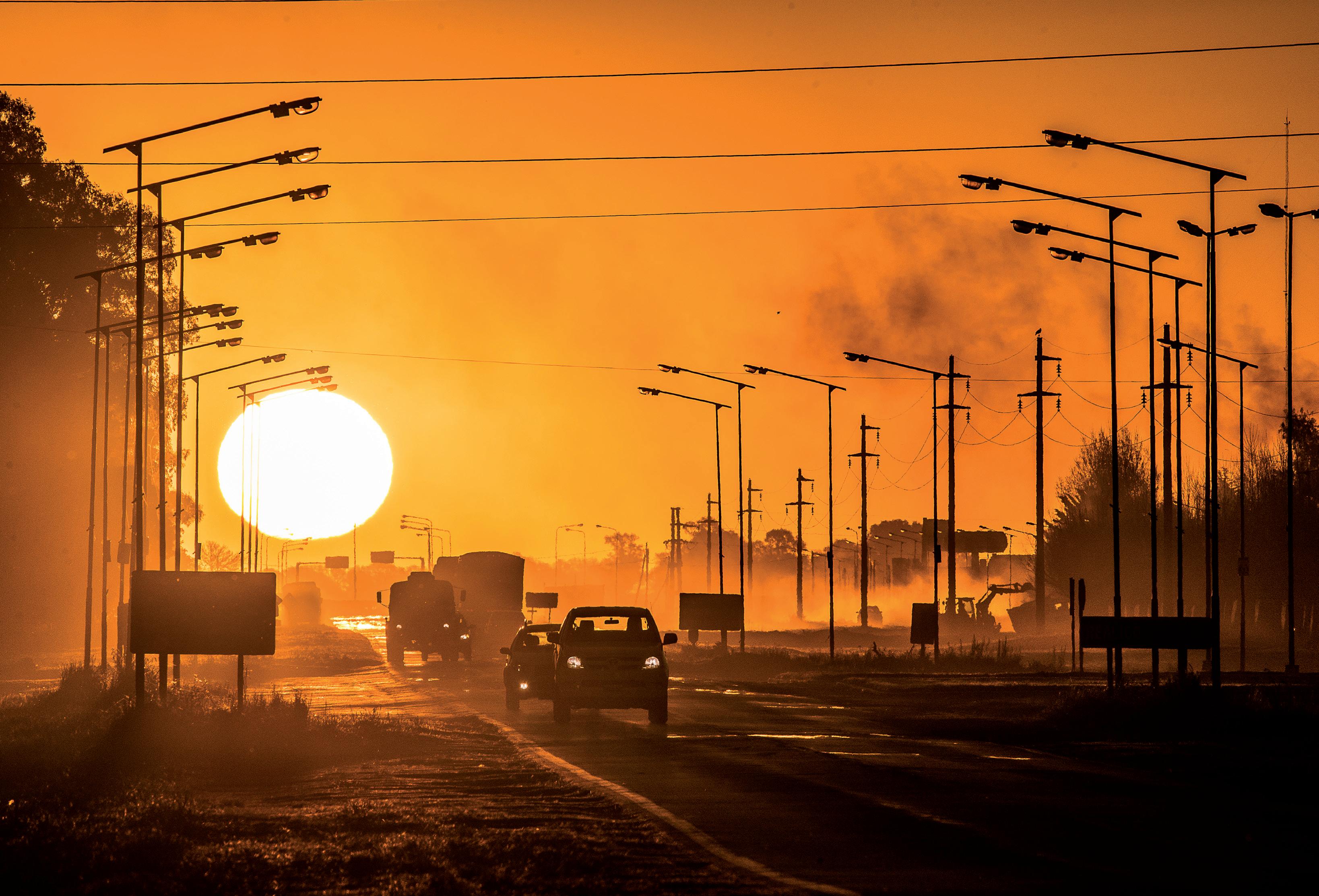 Atardecer sobre Ruta Nacional 188 y acceso a Realicó, Ricardo Balbín.