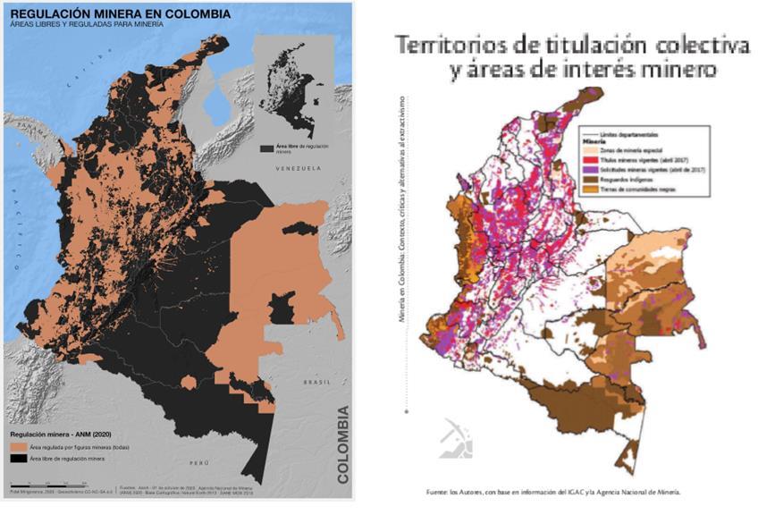 Colombia- áreas de Regulación minera y Territorios de titulación colectiva