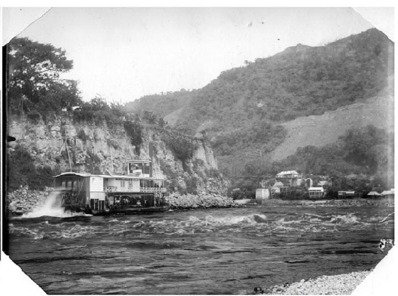 Imagen: Vapor por el Magdalena, remontando el Salto de Honda. Foto de Tomas S Boyd 1899, en: