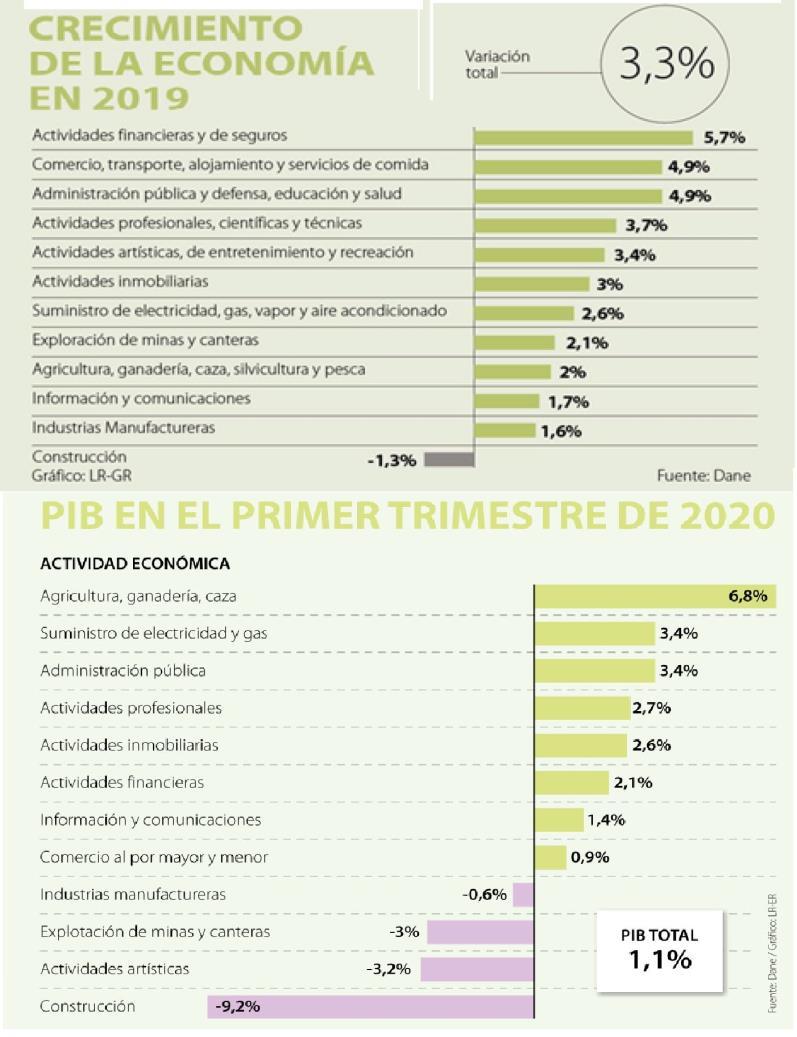Colombia: crecimiento del PIB en 2019 y primer trimestre de 2020. DANE, En La República