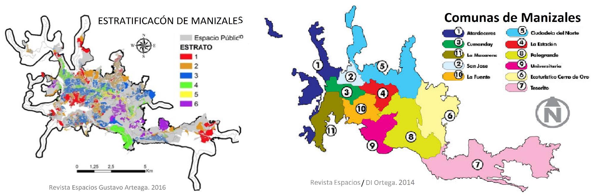 Contraportada: Estratificación al 2016 – G. Arteaga, y Comunas de Manizales al 2014Revista Espacios / DI Ortega.