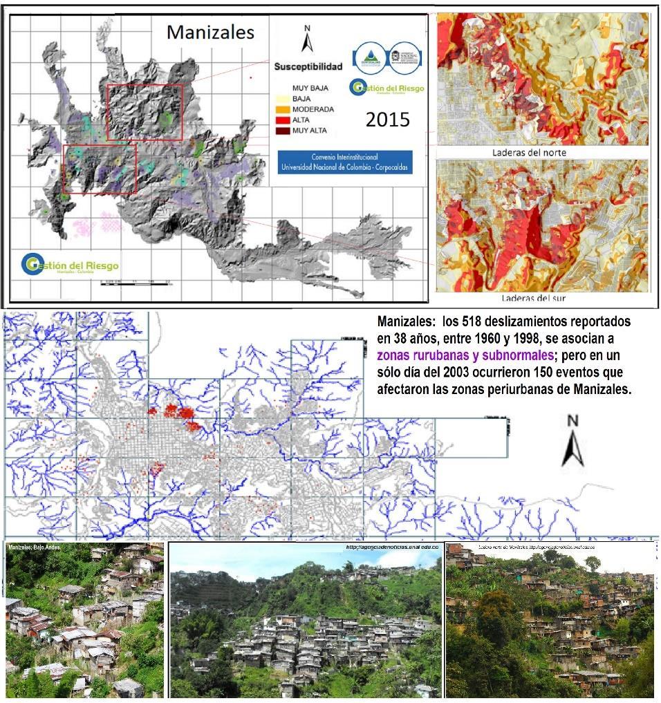 Manizales: ciudad de laderas vulnerables al cambio climático por pasivos ambientales, y deslizamientos entre 1960 y 1998.