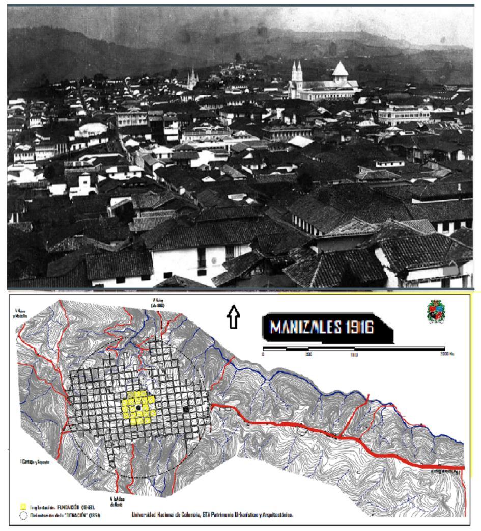 Manizales: la “aldea de bahareque”, en Villegas Editores; y plano de 1916, en Escuela de Arquitectura- U.N. de Colombia